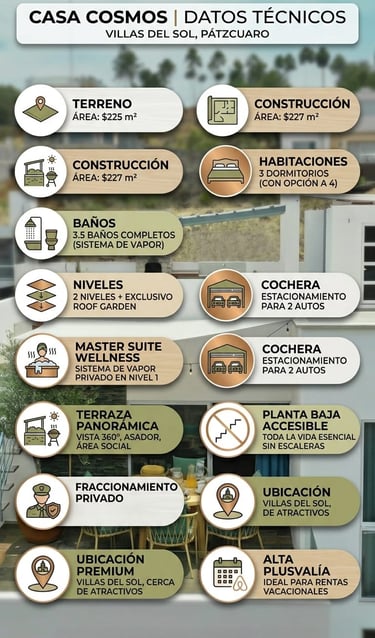 Además de su confort inigualable, Casa Cosmos abraza la tecnología eco-friendly. Disfruta de una residencia que produce energía limpia con paneles solares y garantiza confort térmico con su calentador solar. Vive en armonía con el entorno de Pátzcuaro sin sacrificar la modernidad.